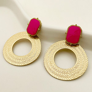 - Nombre del producto: 1 par de pendientes colgantes chapados en oro de acero inoxidable chapados en esmalte circular estilo vintage informal