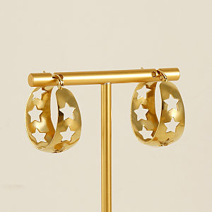 Inicio>Joyería del acero inoxidable>Aretes>1 par de pendientes de aro chapados en oro de 18 quilates de acero inoxidable con diseño de estrella retro