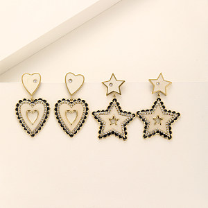 Inicio>Joyería del acero inoxidable>Aretes>1 par de pendientes colgantes chapados en oro de 18 quilates con incrustaciones de circonita de acero inoxidable con forma de corazón de estilo vintage