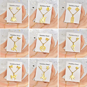 Moda Forma De Corazón Unicornio Libélula Chapado En Aleación De Acero Inoxidable Pendientes De Mujer Collar 1 Juego