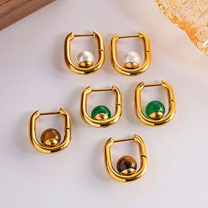 Inicio>Joyería del acero inoxidable>Aretes>Pendientes de perlas con incrustaciones de acero inoxidable en forma de U a la moda, 1 par