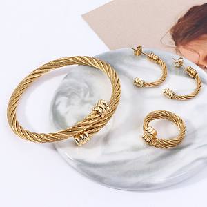Inicio>Joyería del acero inoxidable>Conjuntos de joyas>Pendientes de las pulseras de los anillos de las mujeres del acero inoxidable de la raya espiral del estilo del vintage